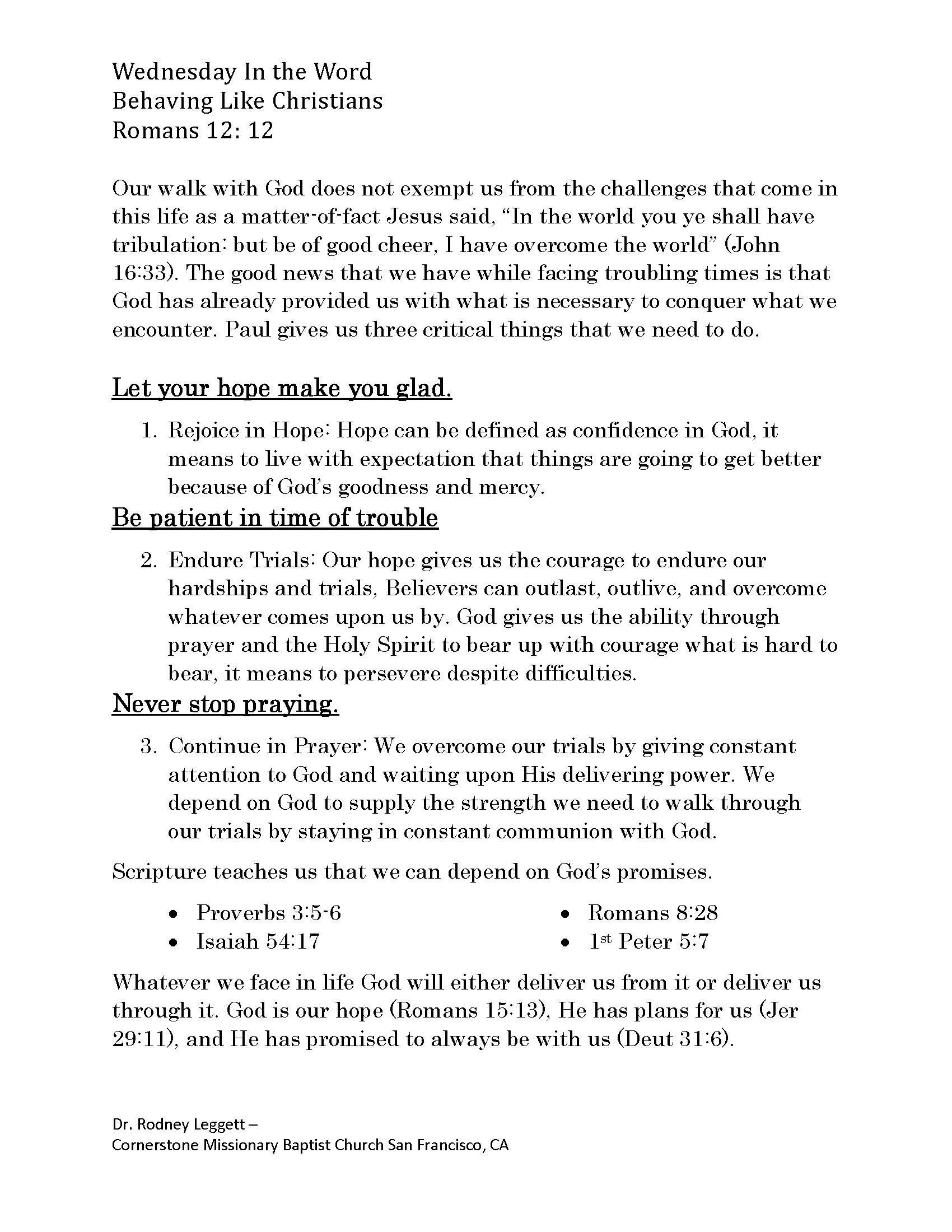 Behaving Like Christians Part 4 Rejoice in Hope (continued)