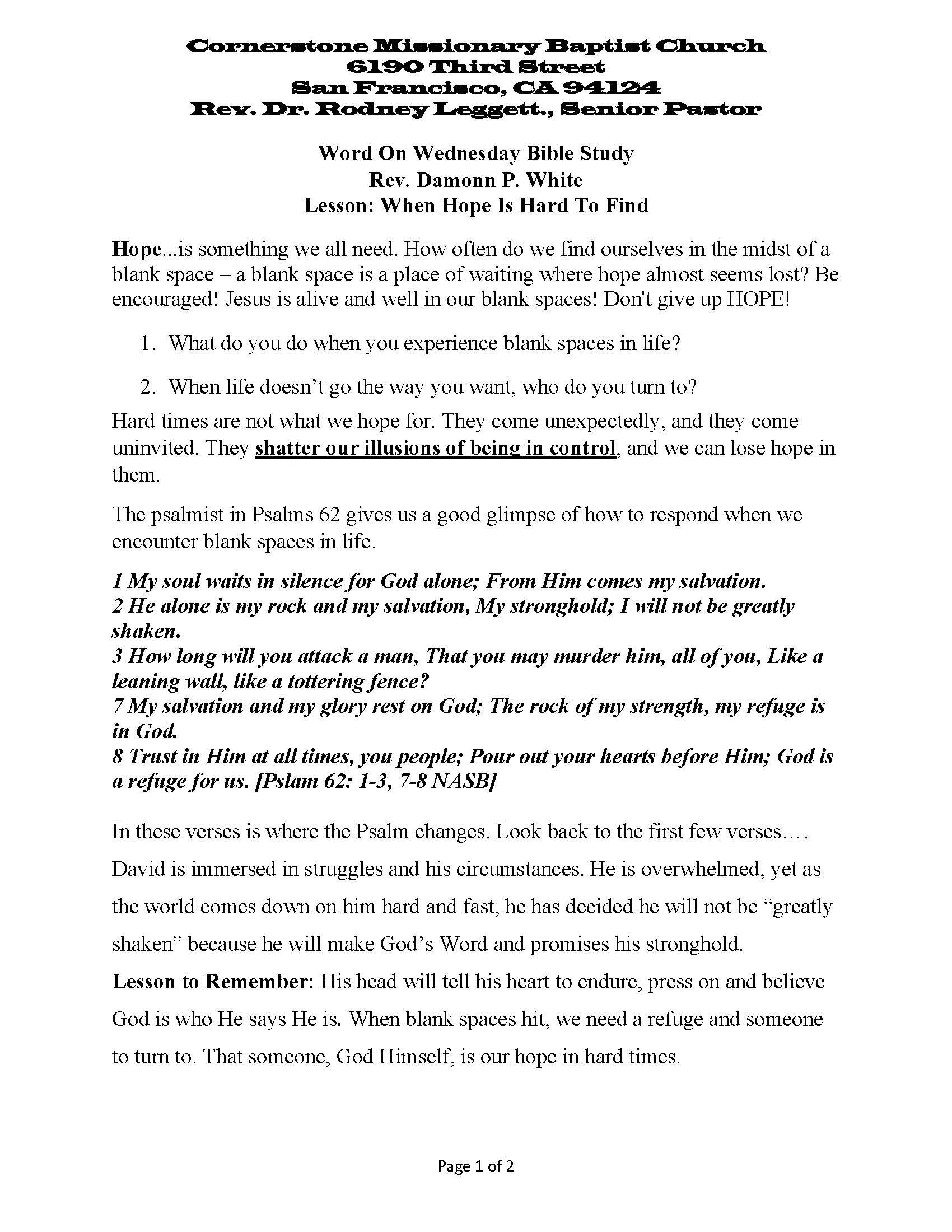 Sunday School on Saturday