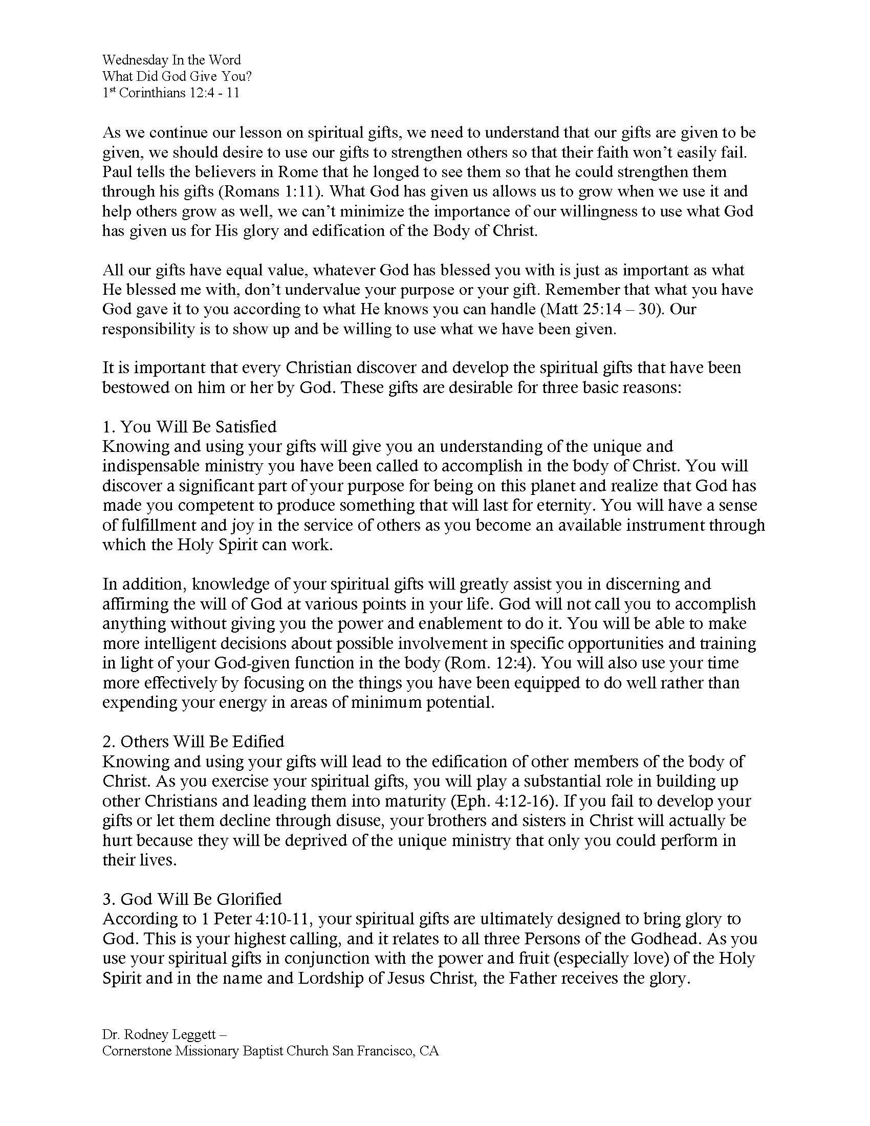 What Did God Give You? Lesson 2 Text: 1 Corinthians 12:4-11 (NKJV)